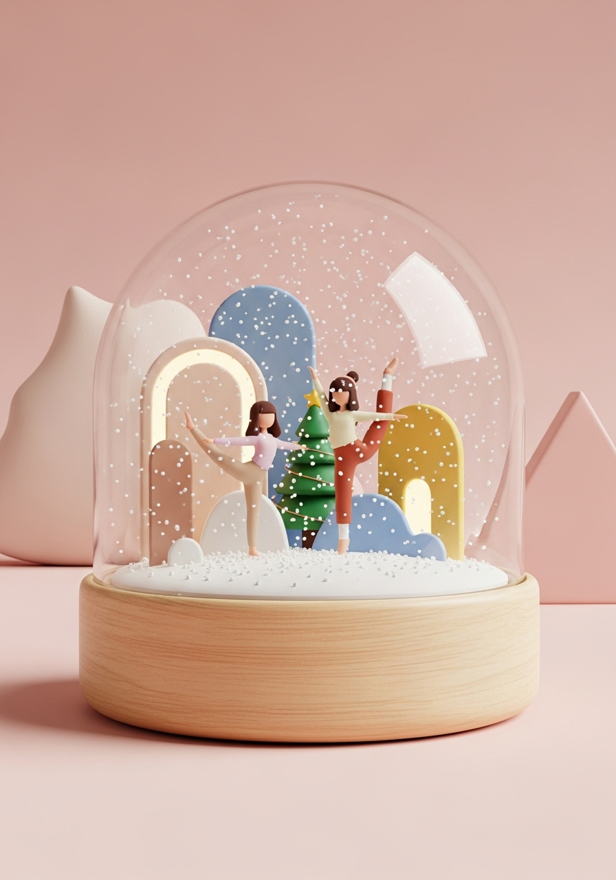 Zwei Freundinnen mit braunen haaren die turnen mit weihnachlichem hintergrund